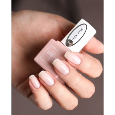Vernis semi permanent E.MiLac n°249 Milk Style a nuance blanche laiteuse et délicate pour une manucure naturelle.